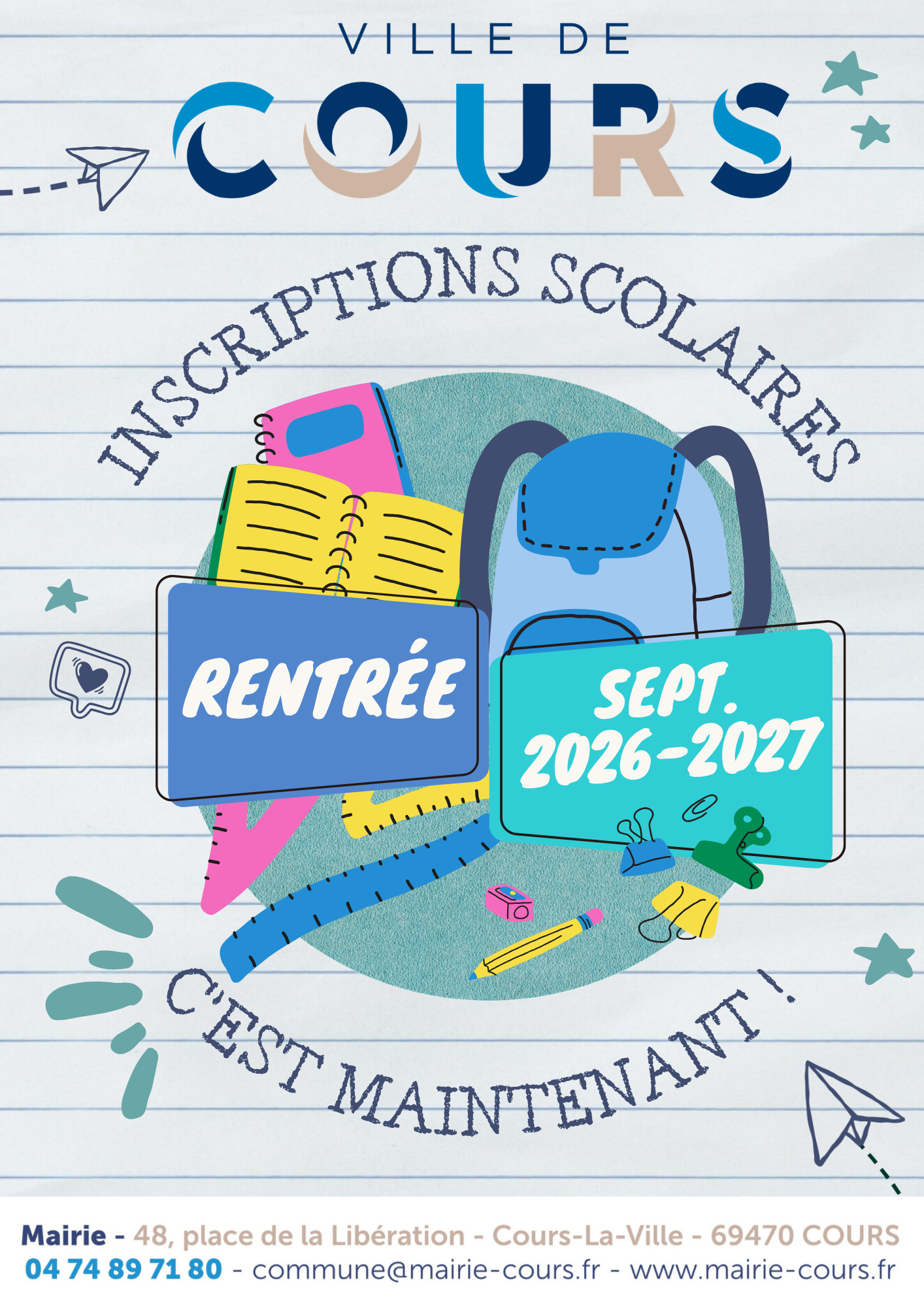 Vous pouvez également visiter la page "Vie scolaire" de notre site internet : www.mairie-cours.fr/vie-pratique/vie-scolaire